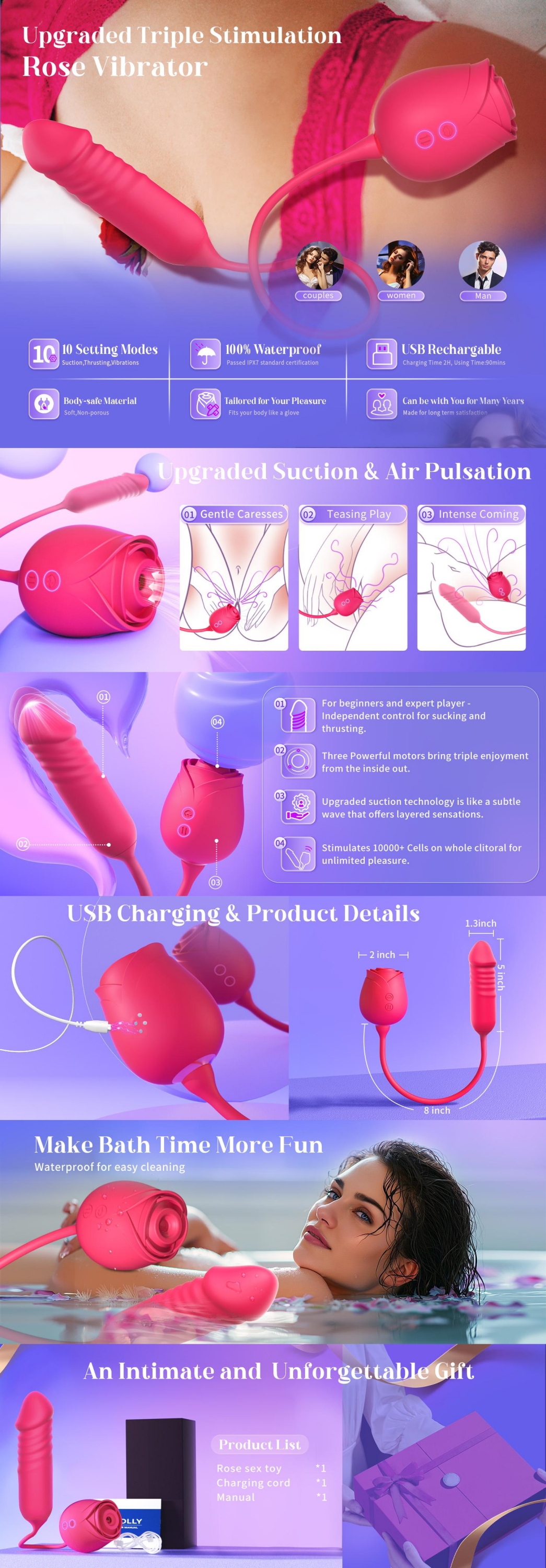 Upgraded Rose Air-Pulse Massager + Vibrating Tip