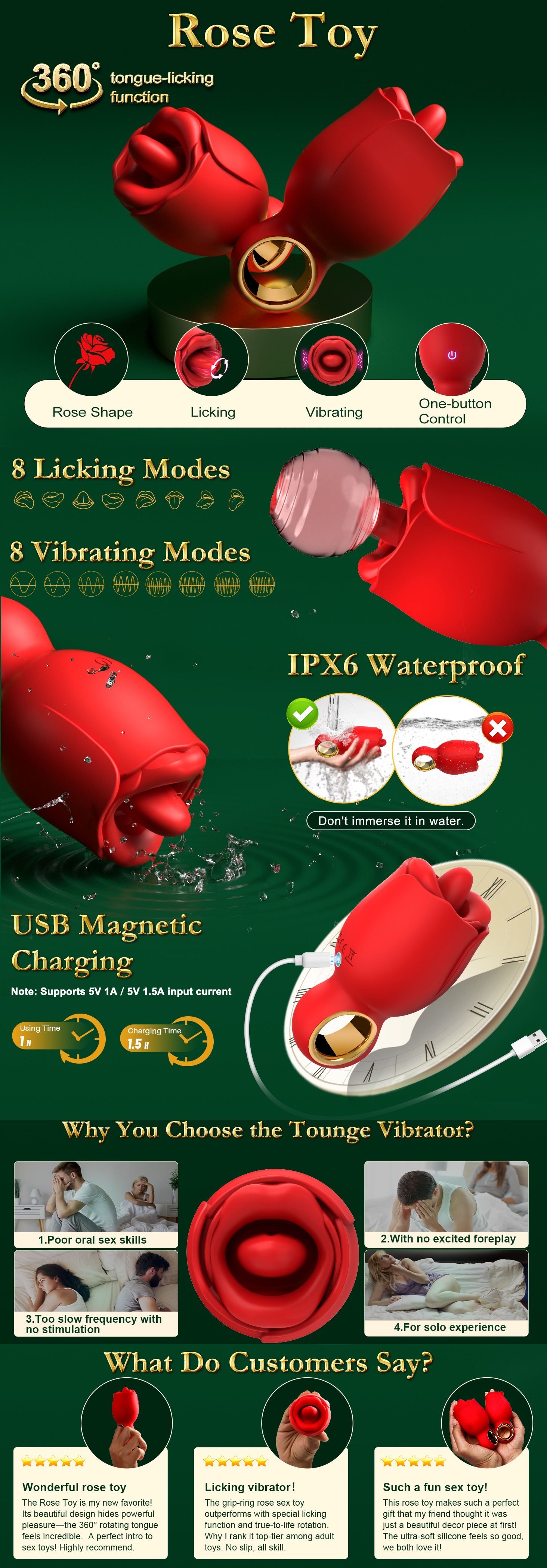 360° Rotating Rose-Style Personal Massager with Custom Modes